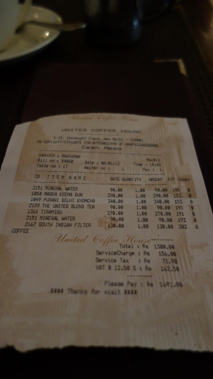 いったんホテルに戻り、カバンをピックアップ。タクシーを呼んでもらおうと思うも、所持金が500ルピーしか無い事に気づきます。ホテルのドアマンに相談すると500ルピーもあらば足りるとの事でしたが、空港で買物もしたいのでホテルにて5,000円の日本円を両替してもらいます。