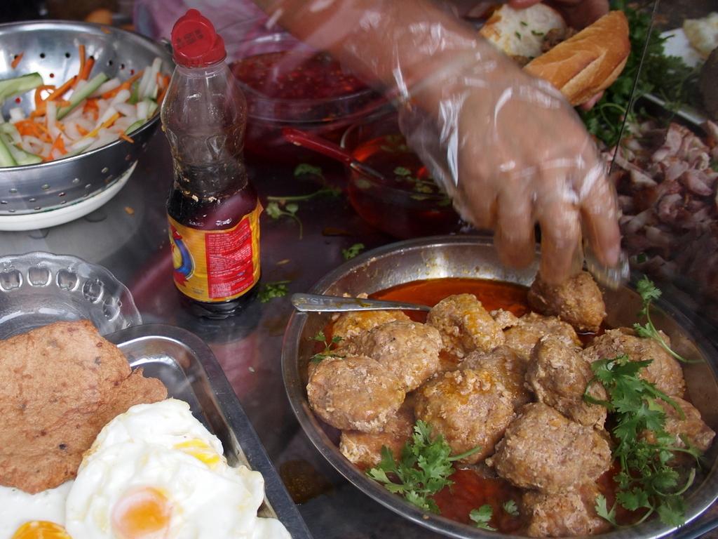 ホテルの前の屋台でバインミーを