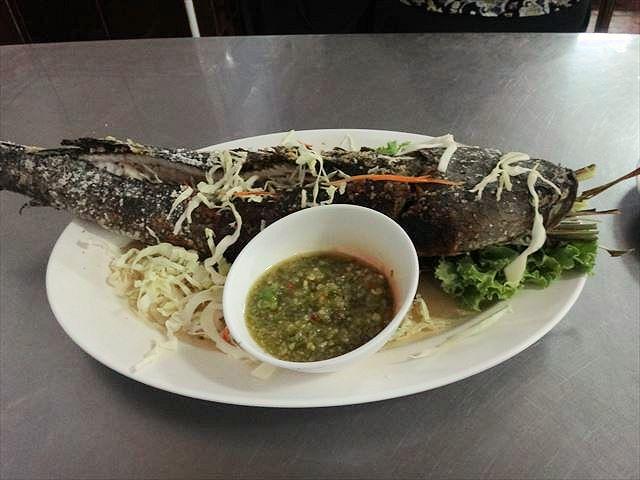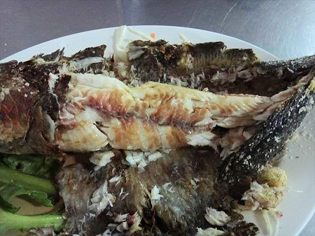 内臓を取った口にレモングラスなどを詰め込んで塩釜焼きにしたもの -