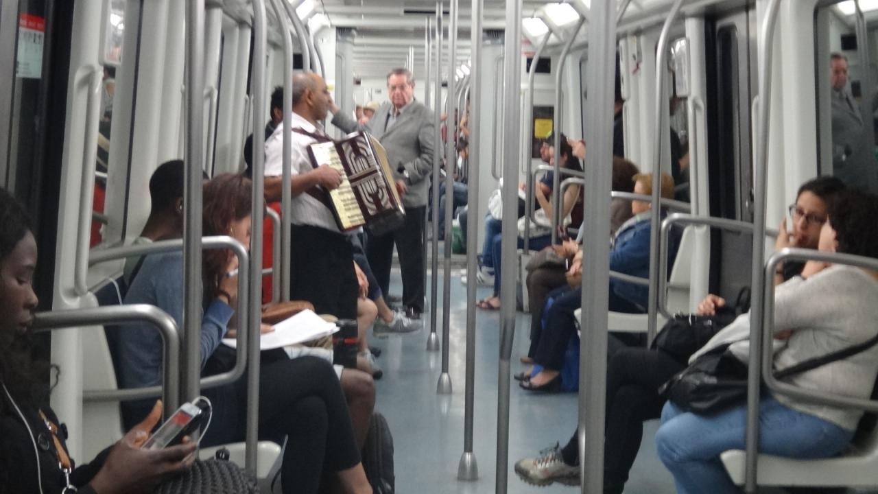 今日はロンドンに移動する日。空港方面に向かうメトロの中で、アコーディオンのおじさん。弾いている曲は「ベッサメ・ムーチョ」。これ、『たくさんキスして!』という意味だと思うんだけど、遠慮しておきますネ。 -