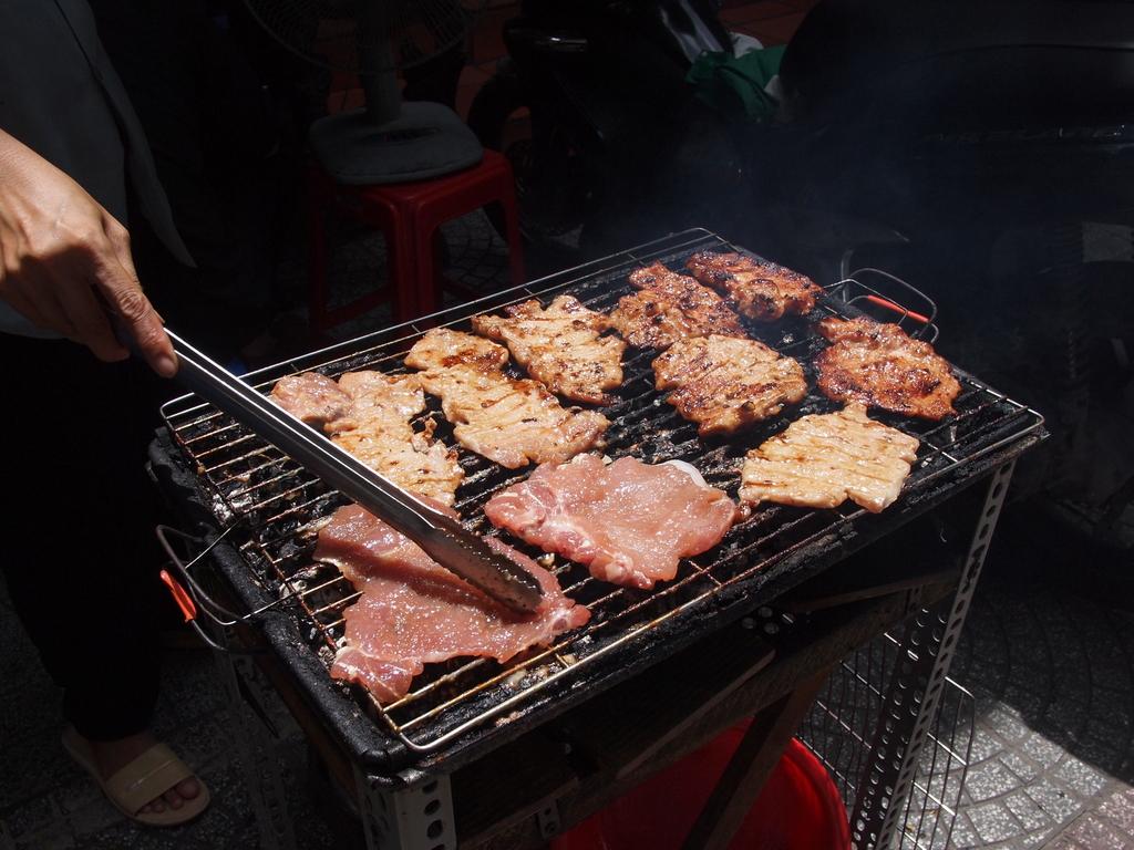 ベトナムに来てまだ一度も日本料理を食べていない。 いちどくらいラーメンかなにかを食べようと日本料理店街へむかったが、その途中、店頭で煙をもうもうとあげて、いい匂いをまき散らしているお店に捕まってしまった・・