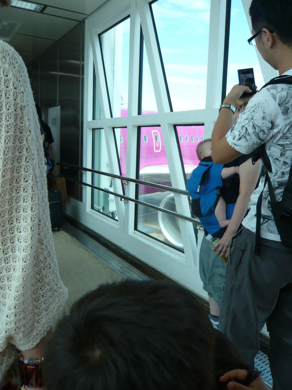 関空行ピーチの機内に向かいます。