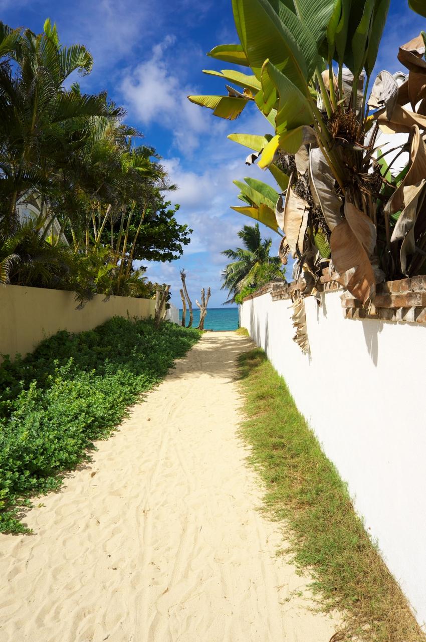 住宅街の中にさりげなくラニカイビーチへの道があります。