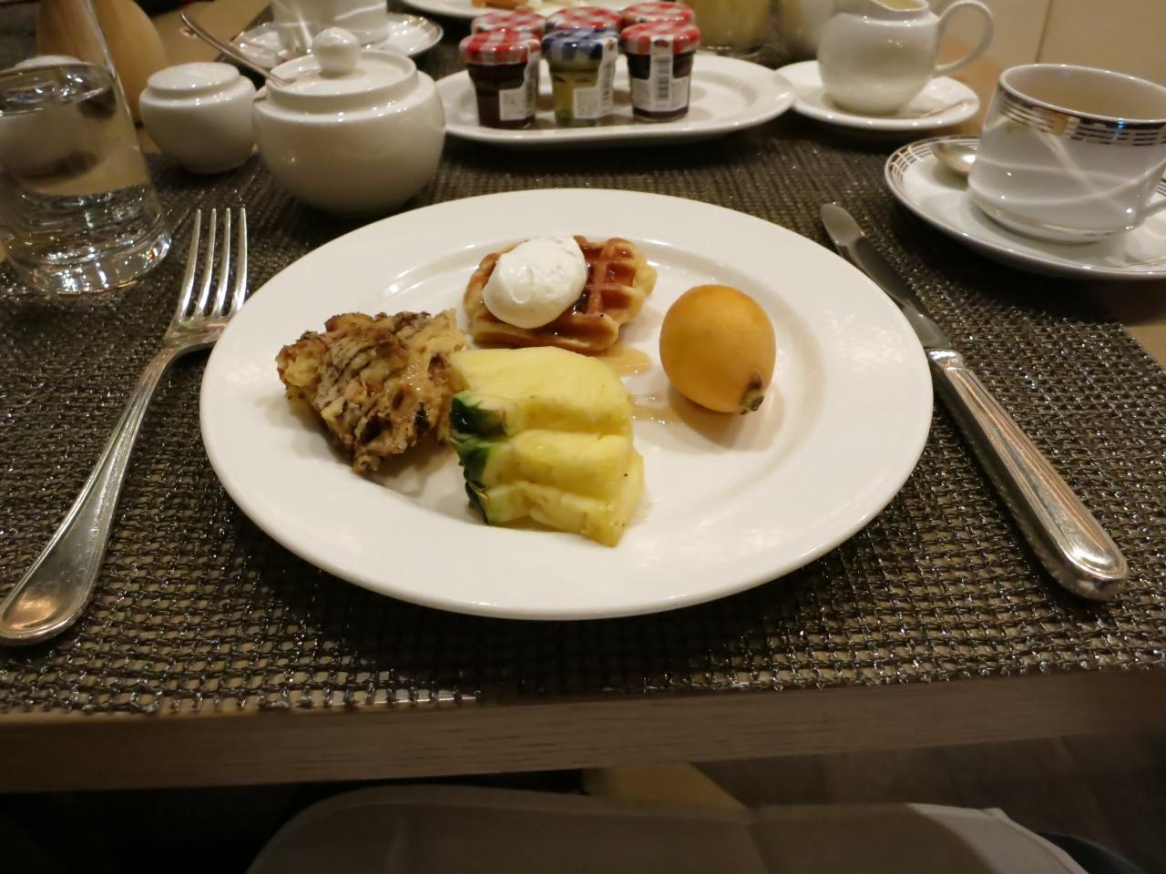 待ってる間、部屋にも行かずココでお茶しながらクッキー食べ尽くしてたみたい、ラウンジのスタッフとお喋りしながら。。。 -