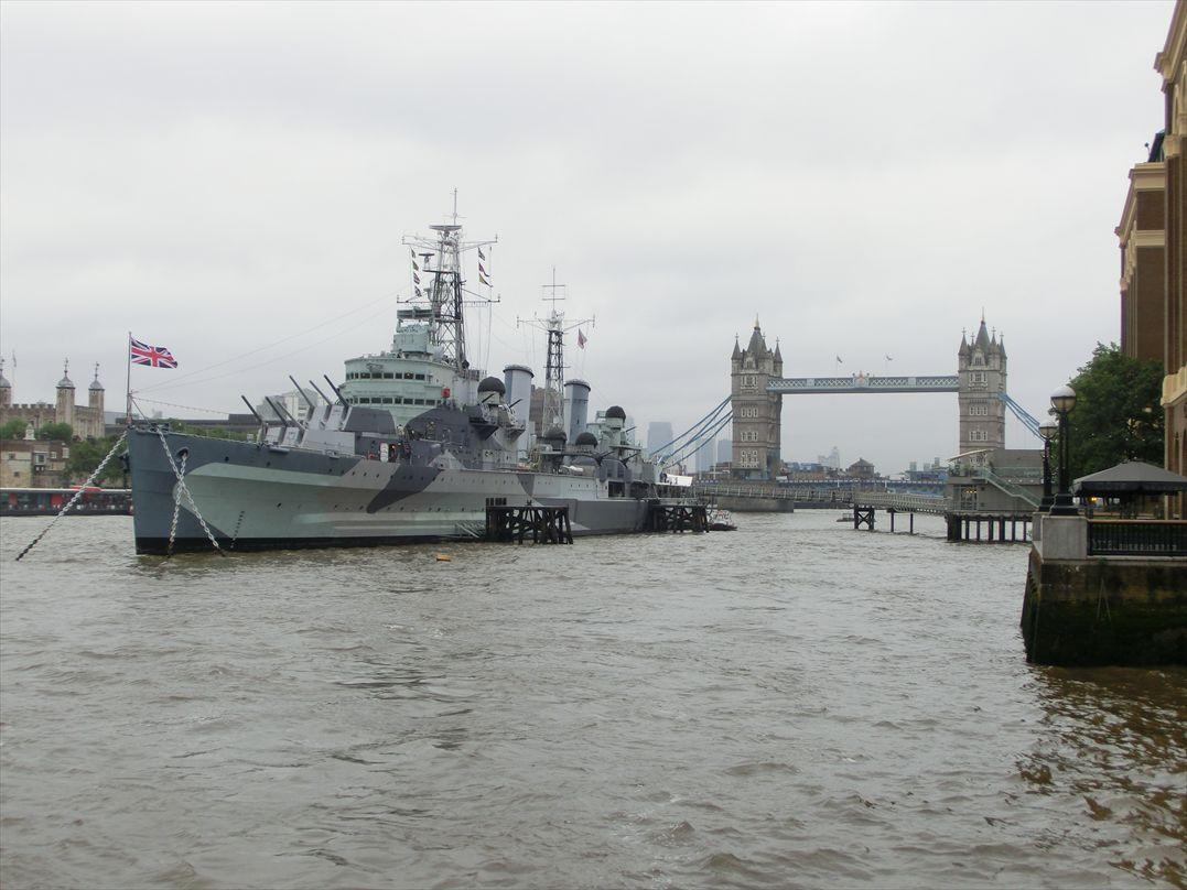 HMSベルファストとその先に見えるタワーブリッジ。ロンドン橋からタワーブリッジに向けてクィーンウォークと言う遊歩道があったので歩いてみました。