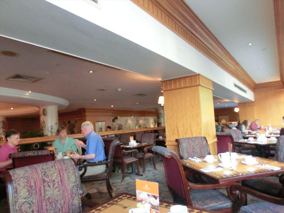5日目のホテルの朝食。主食はパン。ポークハム、ターキーハム、スライスチーズでサンドイッチを作りました。日曜スペシャルでえびシュウマイがありました。