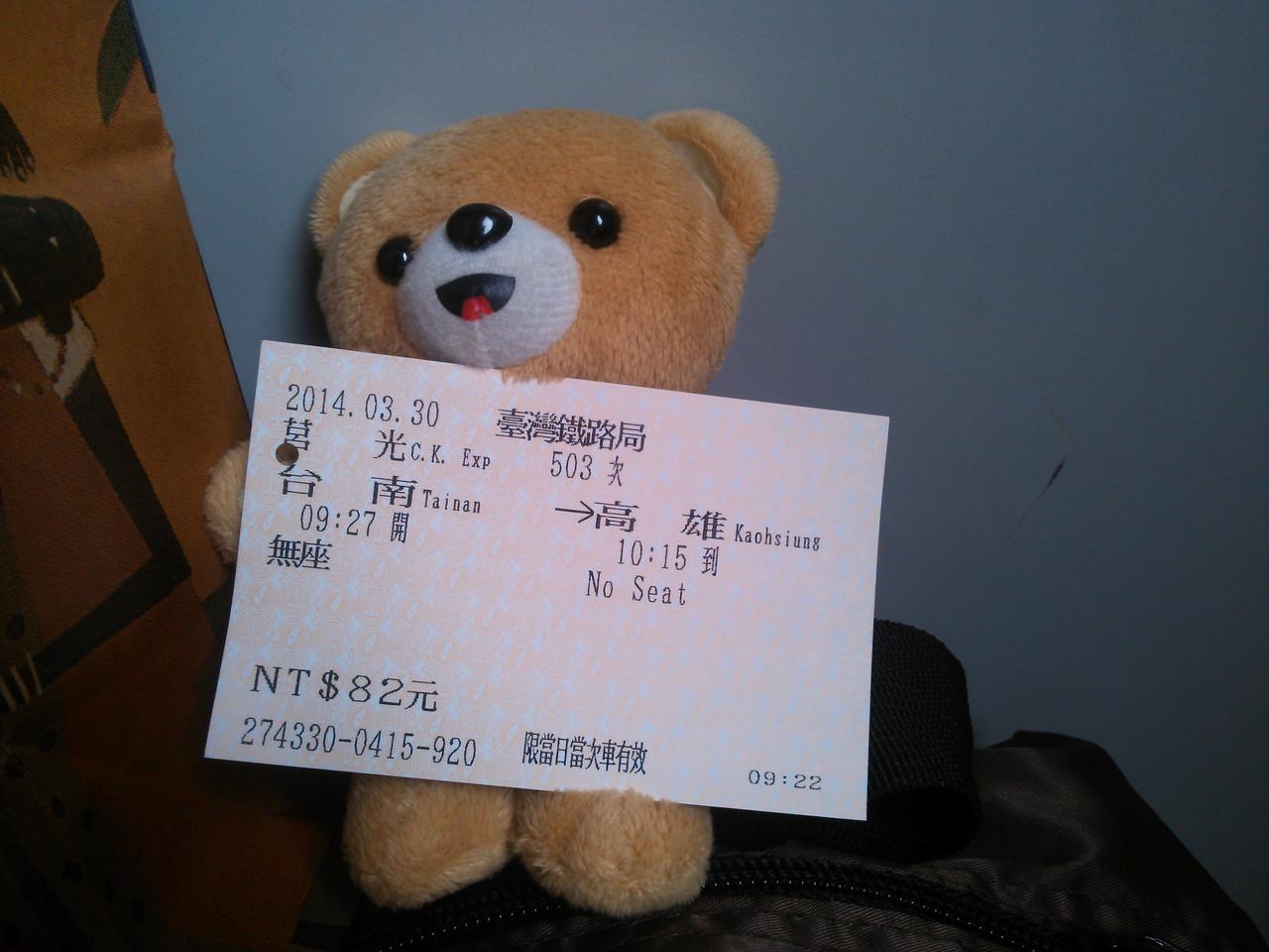 窓口で切符を購入し、ホームへ。高雄まで82NTD。
