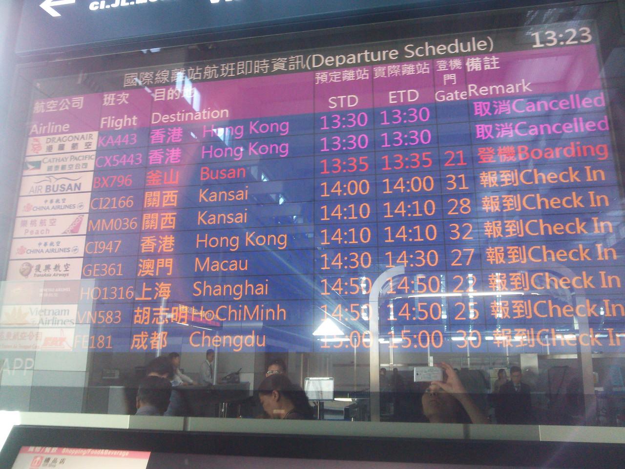 向かいのゲートのチャイナエアラインの関空行きもディレイのようです。