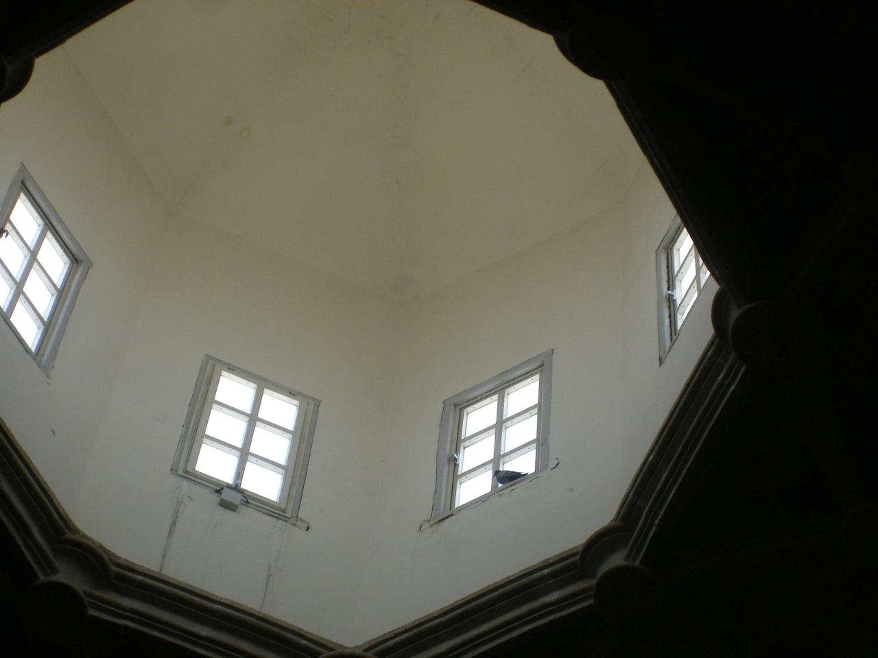 写真中央右側の窓枠に止まっているのは、サンタ・クルス美術館内に闖入したハトです。ハトは、最初バタバタと天井付近を飛び回っていましたが、監視員は追い払う様子もなく、実にのんびりした雰囲気でした。