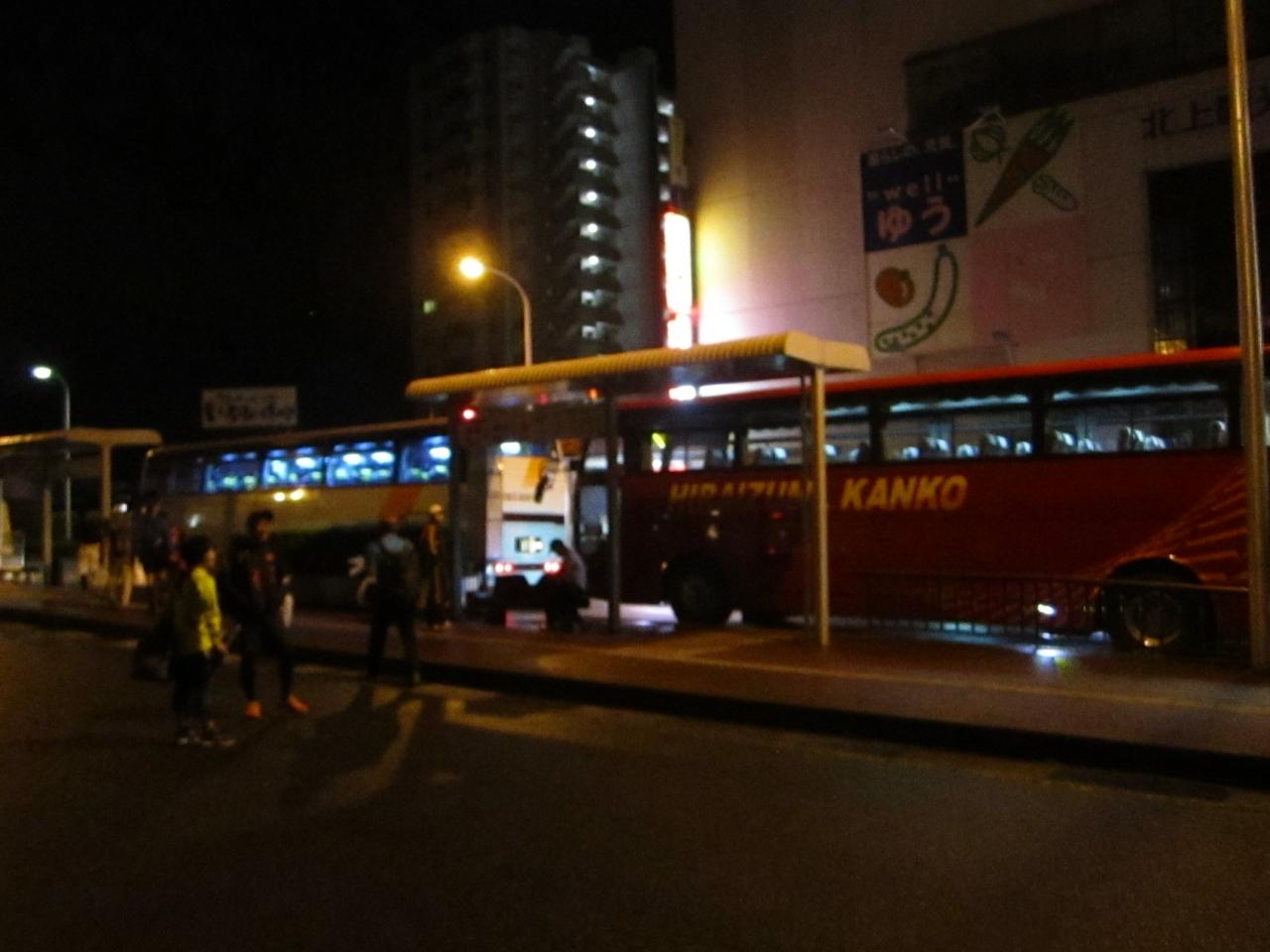 翌日。北上駅前からシャトルバスに乗り込みます。