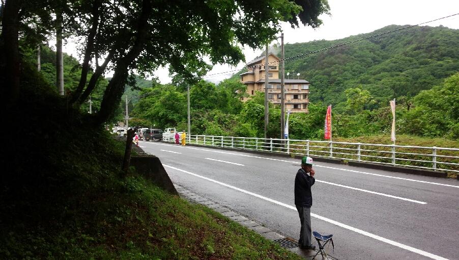 40km。鉛温泉に向かう道。登りが続く。基本的にこの辺りではものすごいモチベーションが低くて、お腹の調子も悪くなってきたので、いつ止めようか、そればっかり考えながら走っていた。