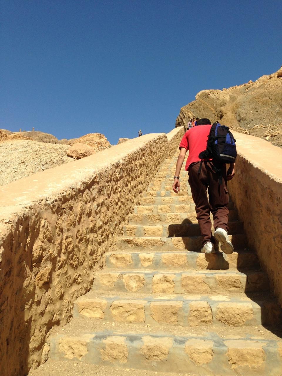 シェビカは山の裾に緑のオアシスが広がっており、その上の崖を登る。