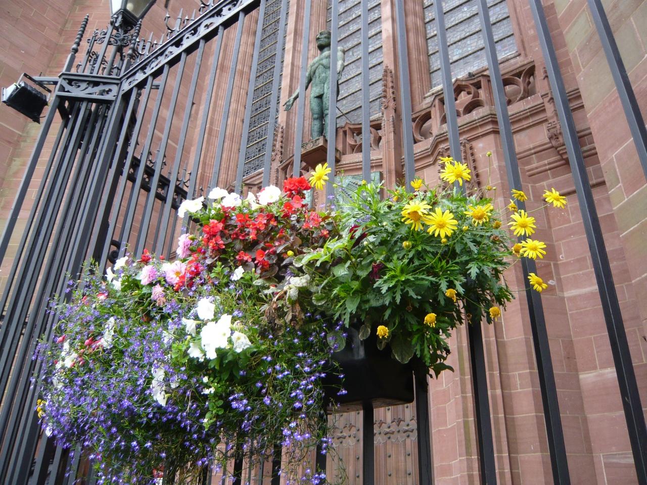 大聖堂正面ファサードの門扉に飾られた花籠