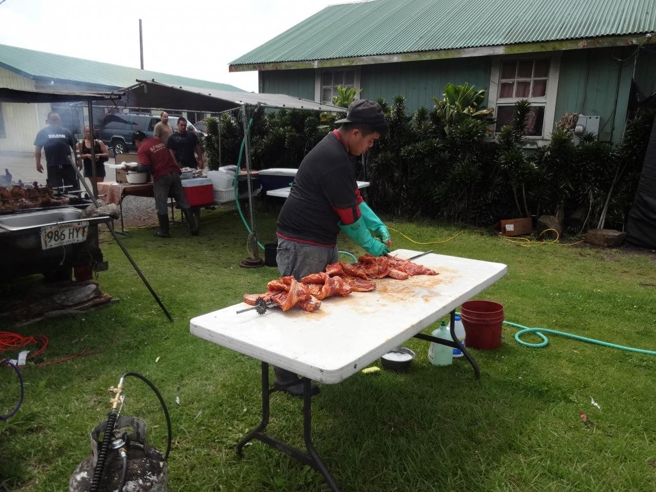 おにいさんが下ごしらえ、豚のフリフリもあります。