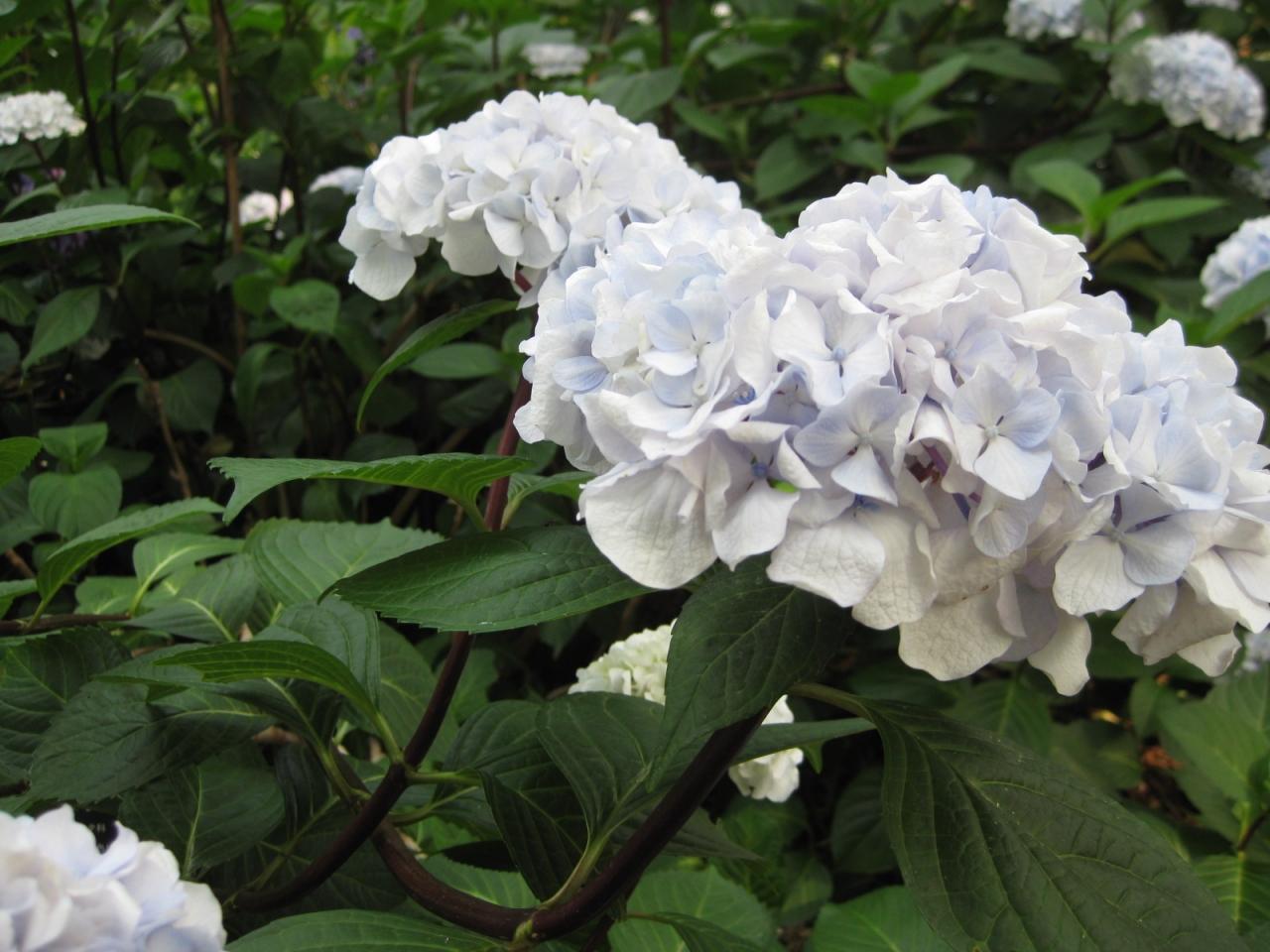 私ははじめて見る、茎が黒い「クロジクあじさい」も見事に満開!
