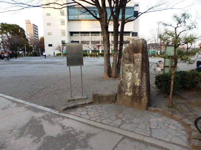 台東区スポーツセンター広場の竹屋の渡し跡の碑周辺の光景。
