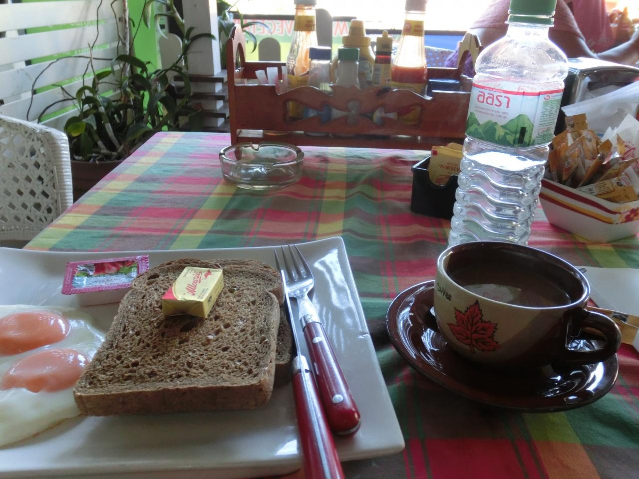 目玉焼き×2+トースト+バター+ジャム+コーヒーで90TB(290円)。