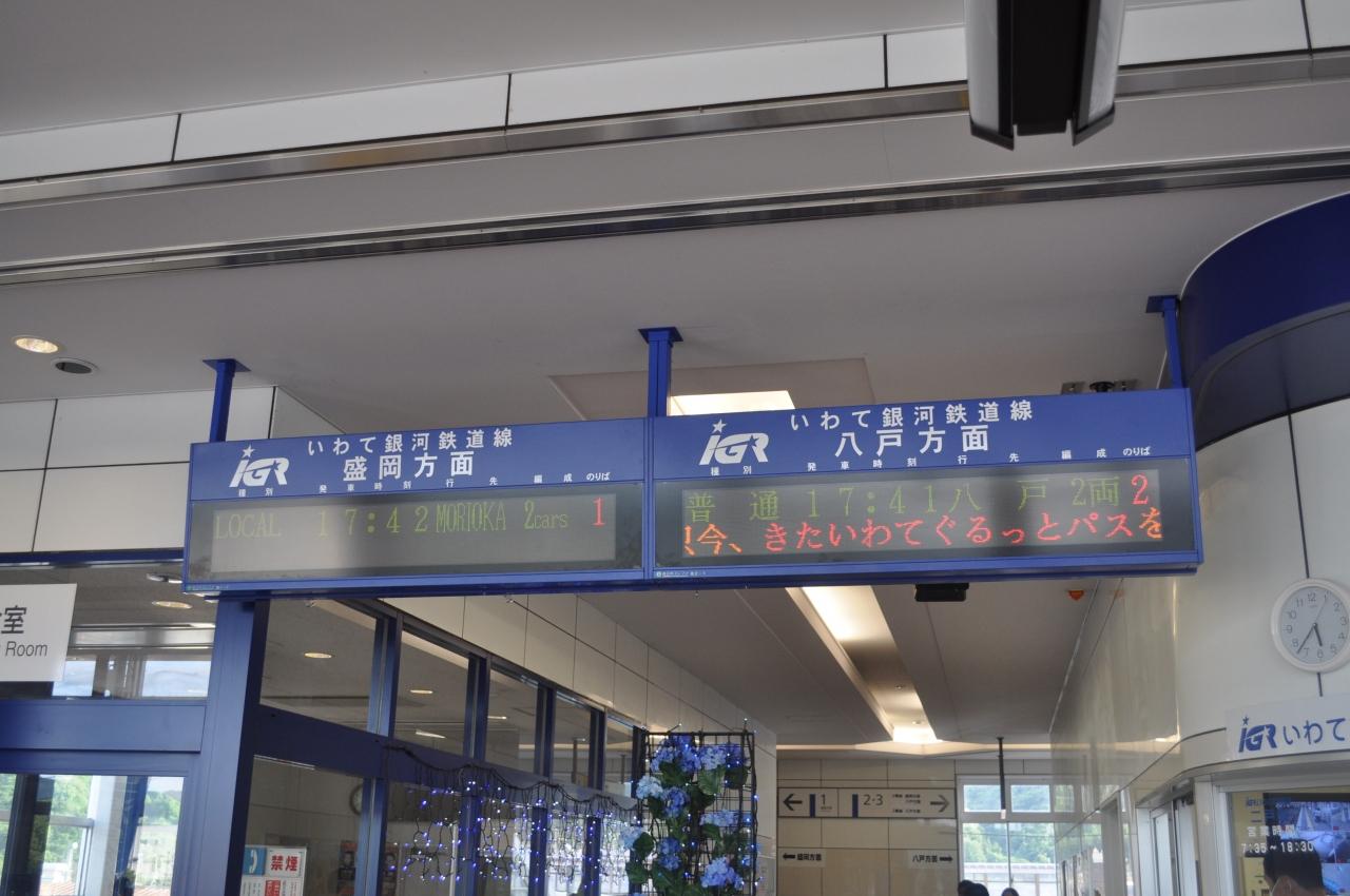 ここで、先ほどすれ違って金田一温泉駅で折り返してくる、盛岡行きいわて銀河鉄道列車に乗り換えます。