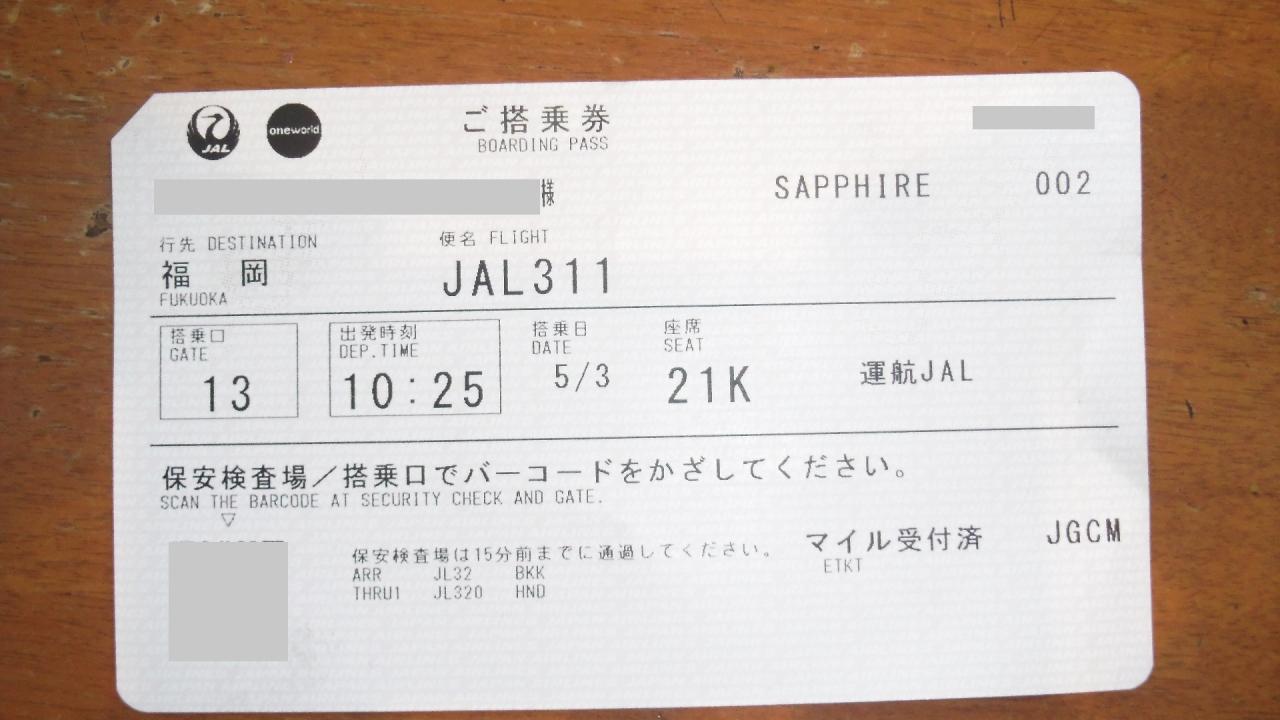 14/05/03 JL311(B772) 羽田(HND)10:25 福岡(FUK)12:15 普通席