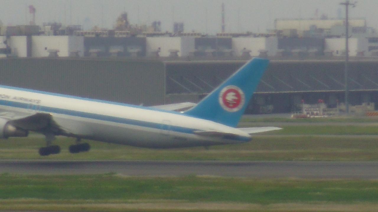 JAL便離陸。ピントが合わない。。