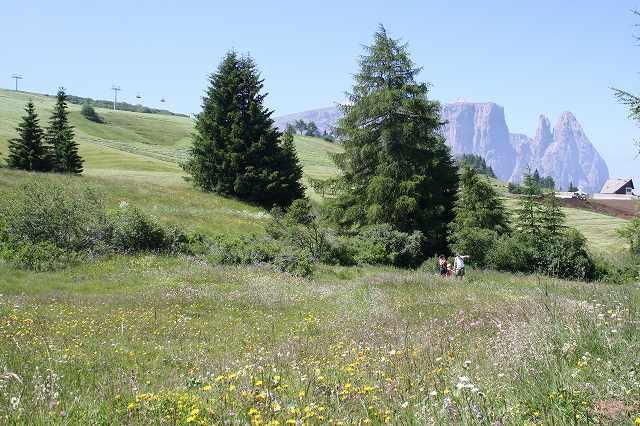 アルペデシウジへのゴンドラ乗り場へ、頂上からはハイキングでオルテセイへ