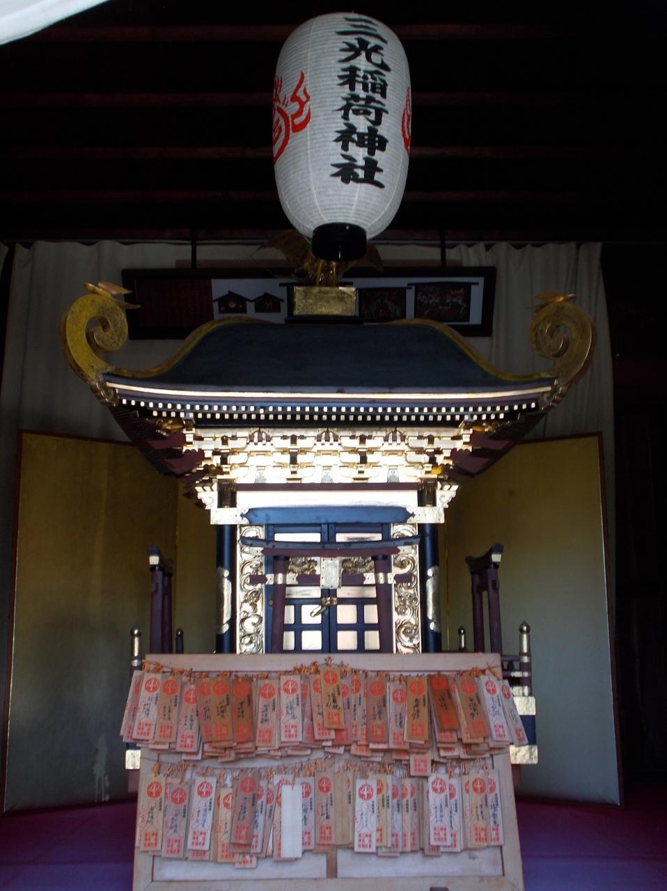 むくり屋根が印象的な妙感寺境内の最上稲荷社。