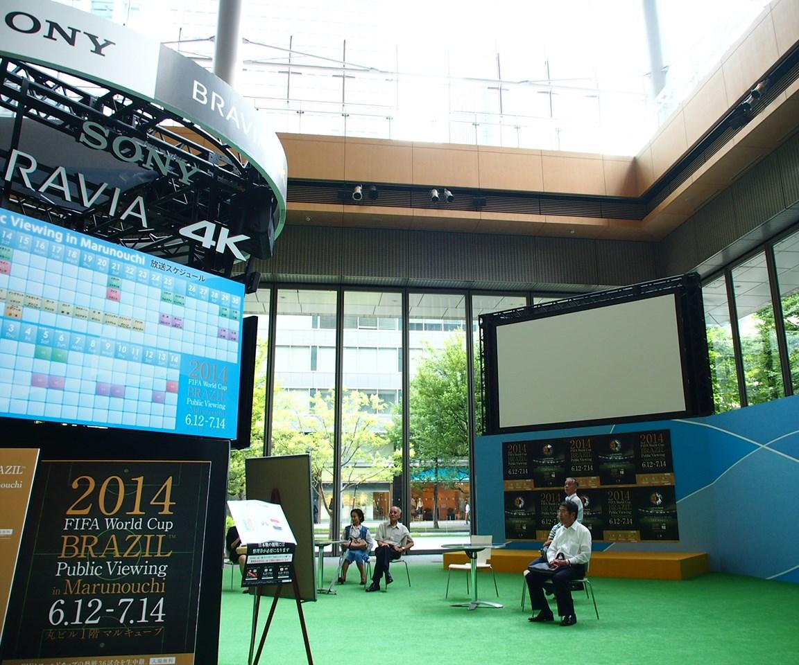 「丸ビル」の1階。サッカーワールドカップのパブリックビューイングをここでやるそうです。
