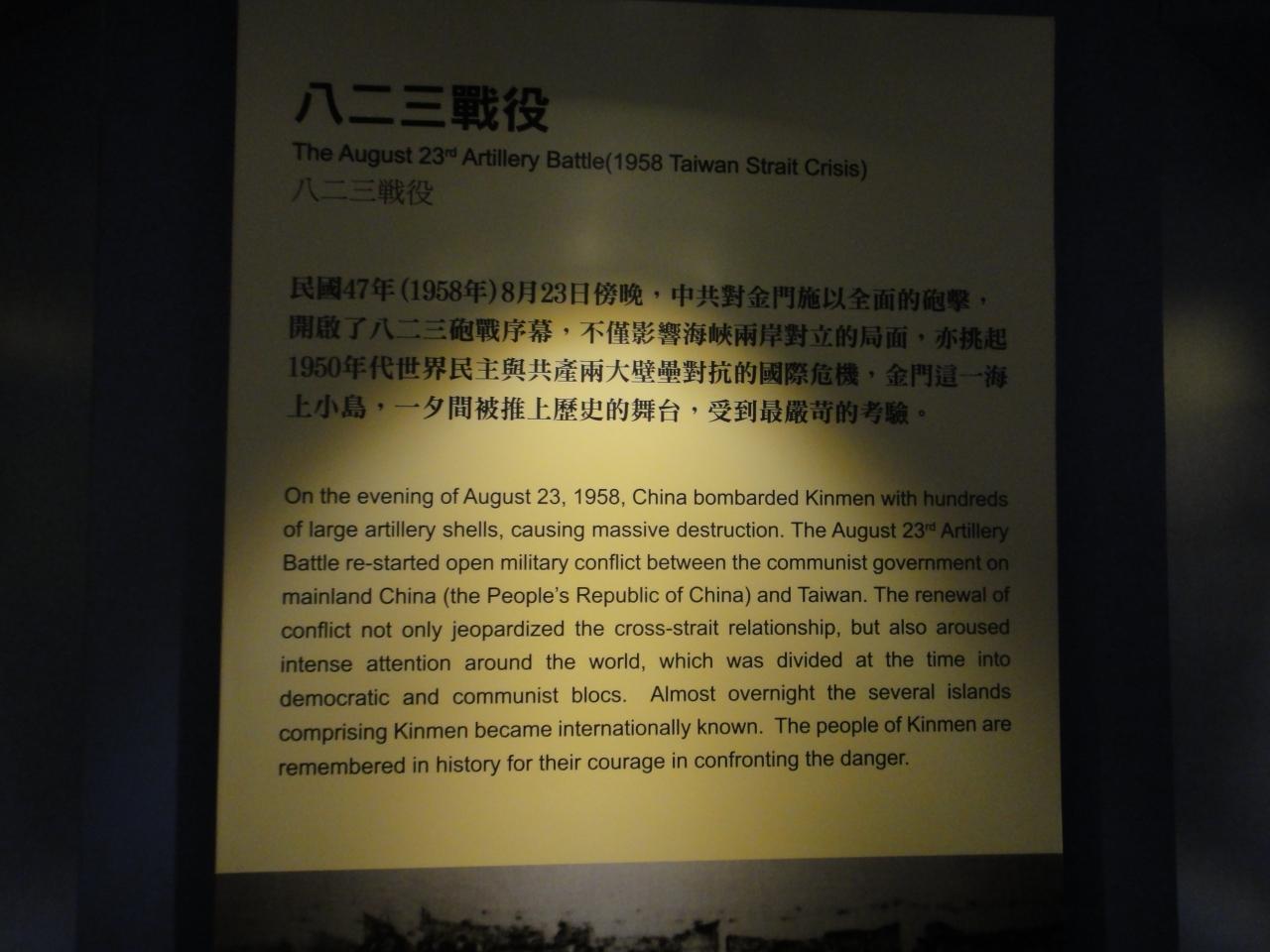 1958年8月23日夜、中国軍が金門島へ砲撃してきたことから八二三戦役が始まりました。