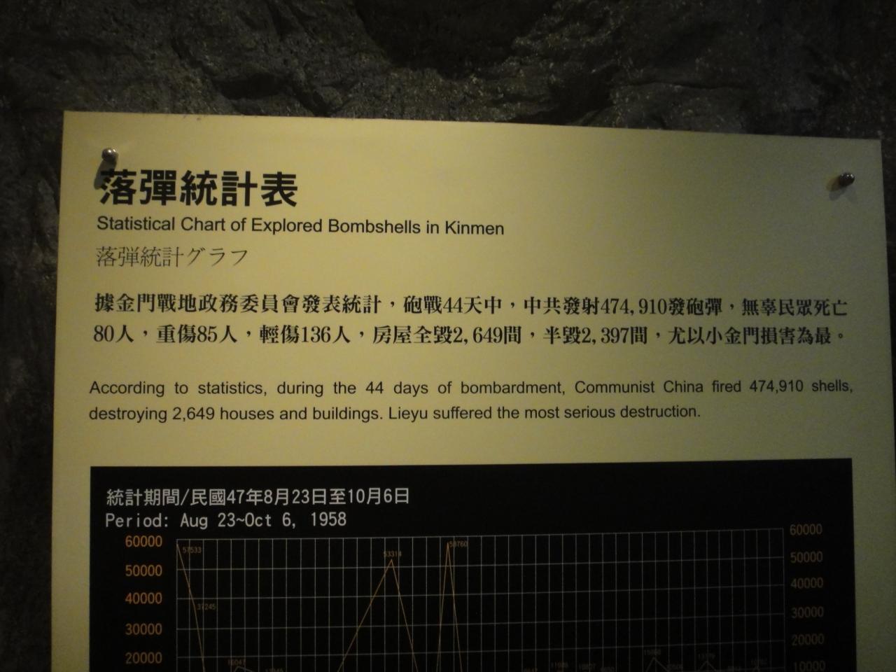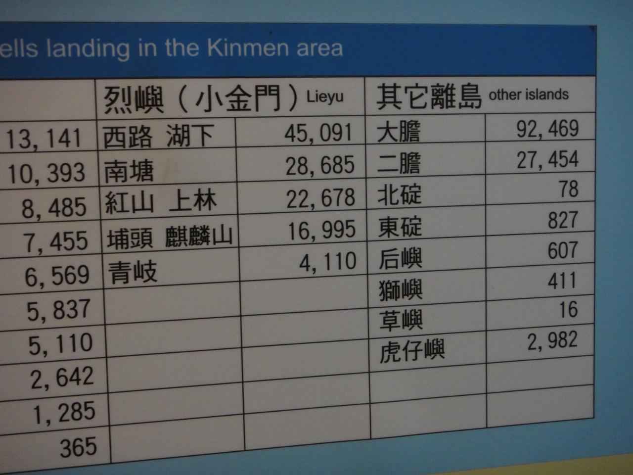 金門島周辺に打ち込まれた砲弾の数