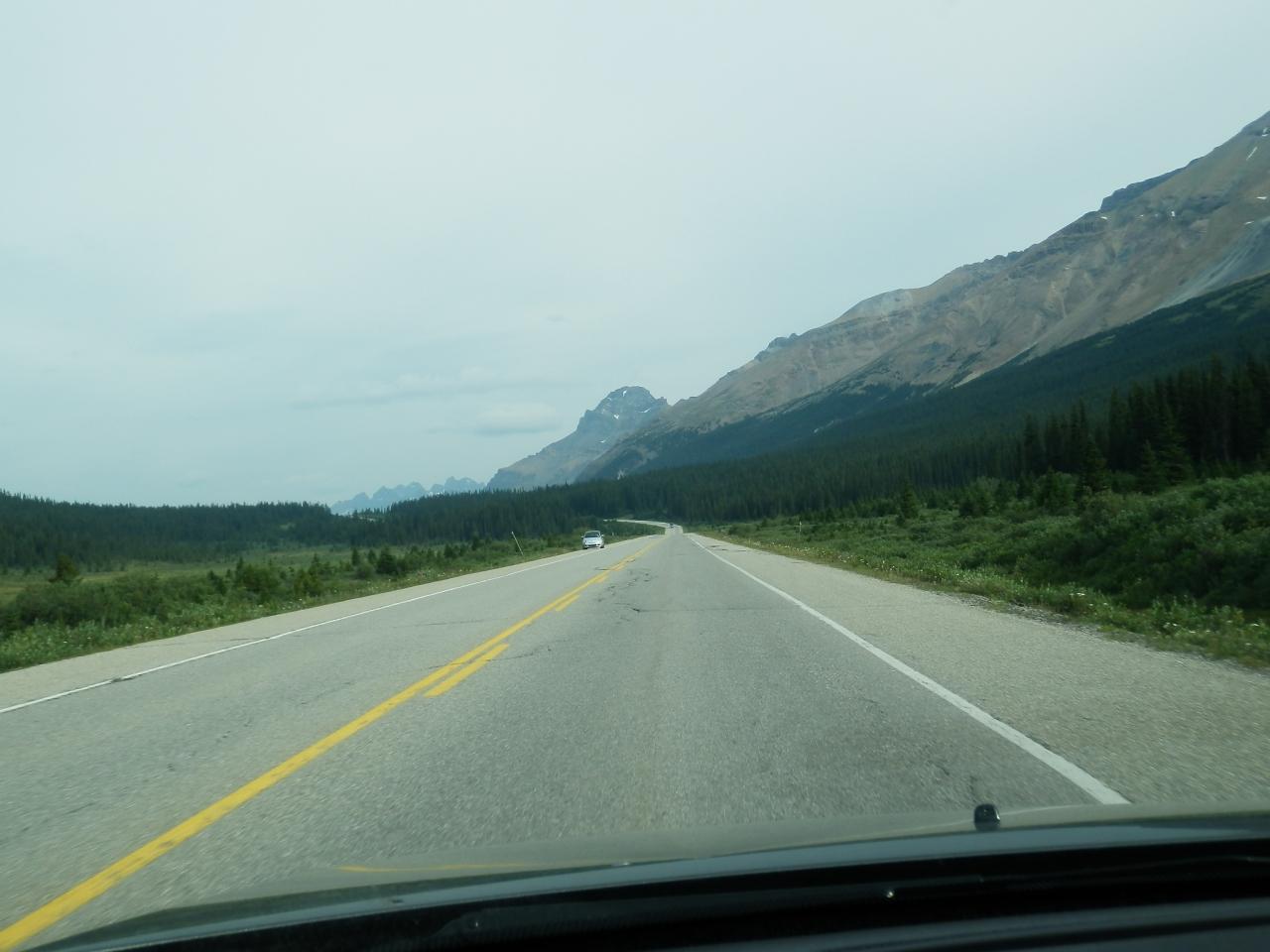 朝9時、アイスフィールド・パークウェイをジャスパー方面に向かいます。ボウ・レイクにはジャスパーから戻るときにまた立ち寄ります。
