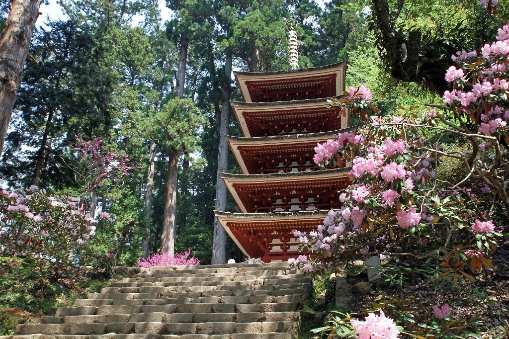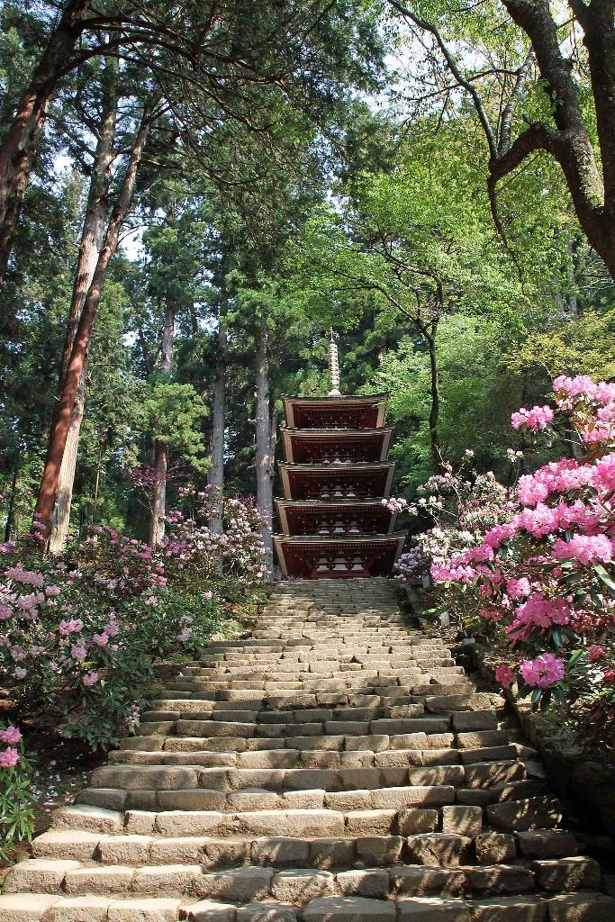 個人的には、これが好き。石楠花に囲まれる塔。