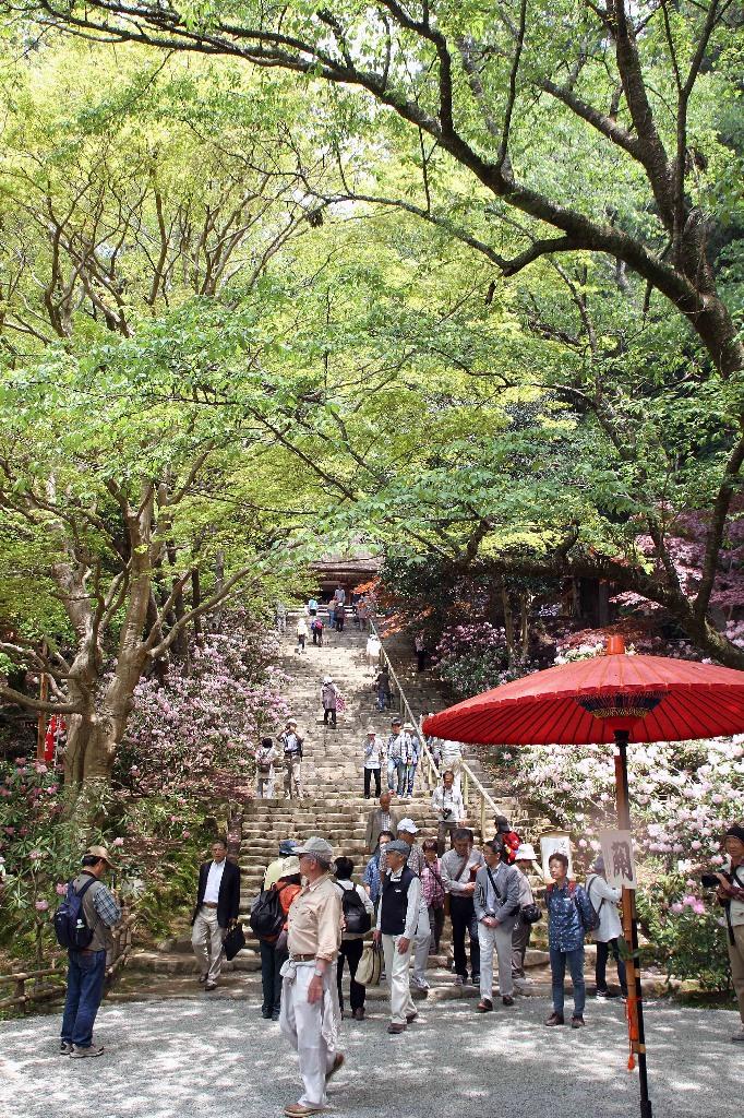 雪の室生寺というレアな状況を撮っているので、心に余裕があるのか、石楠花の頃も良いかなと思い5月の連休初日に室生寺へ。連休終了後赤いラピートや自衛隊の行事に入り、編集が遅れる。とうとう遅れて7月にアップ。人が多いと思いいつものとおり、室生口大野駅発8時20分の奈良交通で行く。車では渋滞、駐車料、ガソリン代の高沸で一人では元が取れずいきませんでした。大阪からなら誰か奇特な人ご一緒ください。といいつつ室生寺に着く。相変わらず車での遠征の連中が先にいてる・・・。人がいない画にこだわると気持ちがしんどくなるが仕方ない。いらち(気があくせくし短気な性格の大阪弁)の男が、人がいなくなるのを待つ。鎧坂、金堂、五重の塔とまわる。今回も頂上は断念。それにしても石楠花は見事である。どうやらここ数年で1番の開花状況であるそうな。雪のときと同じアンゲルで撮るが、大きく変わるのが緑。新緑が美しく石楠花と同等ぐらいに美しい。みな石楠花ばかり見るが、上を見上げると素晴しい新緑にため息をつく。今日の撮影モードは、入江泰吉ではなく土門拳である。きっと根性の悪そうな眼で、アングルを必死で探しているのであろう。後半は、疲れ、余裕も出たのか人の多さもある写真を数枚撮った。昼過ぎに撤収。帰り道の芝桜を撮る余裕もでて、帰阪する。家の傍の近鉄上本町のデパートで、喫茶婆沙羅の100時間カレーを食べ満足する。
