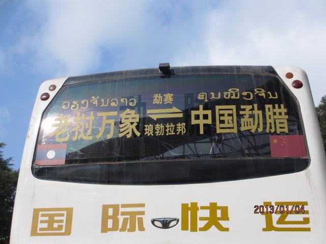 この中国国境からはビエンチャン行の国際バスに乗り換えて行く。漢字で「老遡万象」(ラオス・ビエンチャン)と書いてある。「万象」は「ビエンチャンのこと。