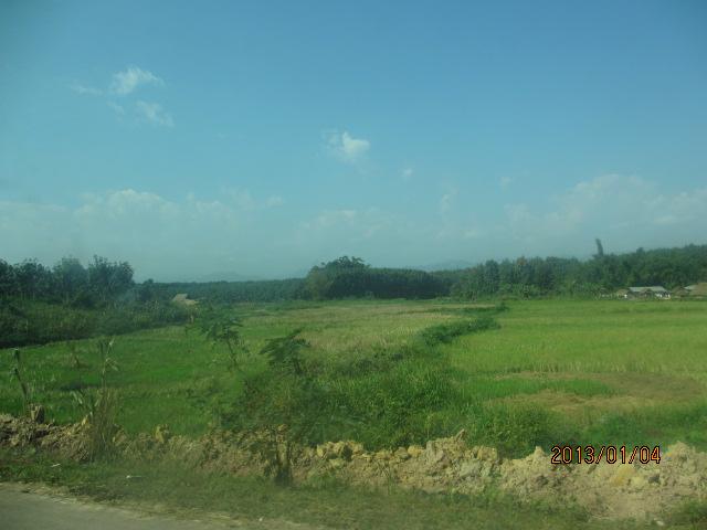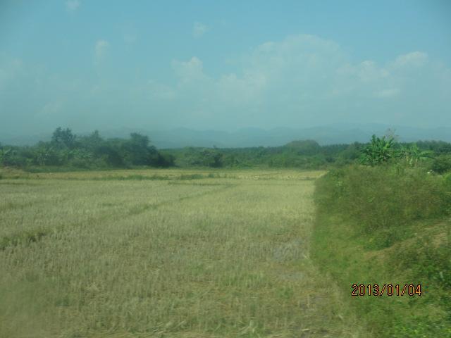 余り耕作されていないような農地が続く。というか、今見えるのは米作地で、コメを刈り取った後の耕作地をそのまま放置し、来年の米作まで遊ばせておいておくようだ。彼等農民にとっては、1年に1度コメを作れば、1年間安泰、貧しくとも1年はやって行ける、ということだろうか。気候に恵まれた国だから、二毛作、二期作などやろうと思えば出来ないことはないと思うのだが、そうやる必要に迫られていない、贅沢は必要ない、今の生活で充分だ、ということだろうか・・。