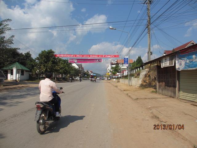 ラオス国境の町「ボーテン」を出たバスは、途中の交通チェックポイントでちょっと止まっただけで、そのまま高原状の耕地の中、刈り取られた稲作畑の中をラオス北部の主要都市「ルアンナムター」(หลวง น้ำท่า)に向かって走り続ける。途中のちょっとした集落の中で、道路は二手に分かれ、左に行くと先日訪問した「ウドムサイ」(อุดมไส)に向かうが、このバスは左手の道路を取って進む。彼等ラオスの学生は、「ウドムサイ」へ行くと言っていたから、この道路を左手に行ったに違いない。