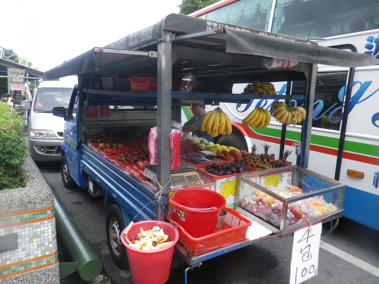 太魯閣峡谷入口附近にいた果物販売者、バナナ・ライチなどを売っていました