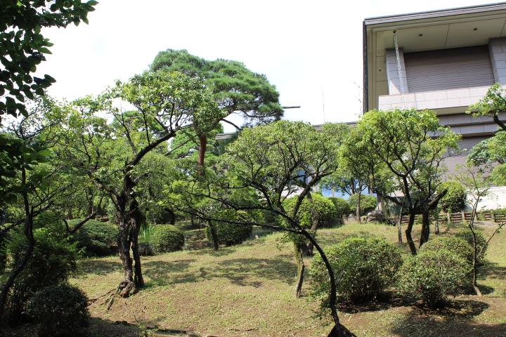 静嘉堂文庫美術館の南側斜面にある庭園。梅林もあるようだが、夏の時期には咲く花はなし。