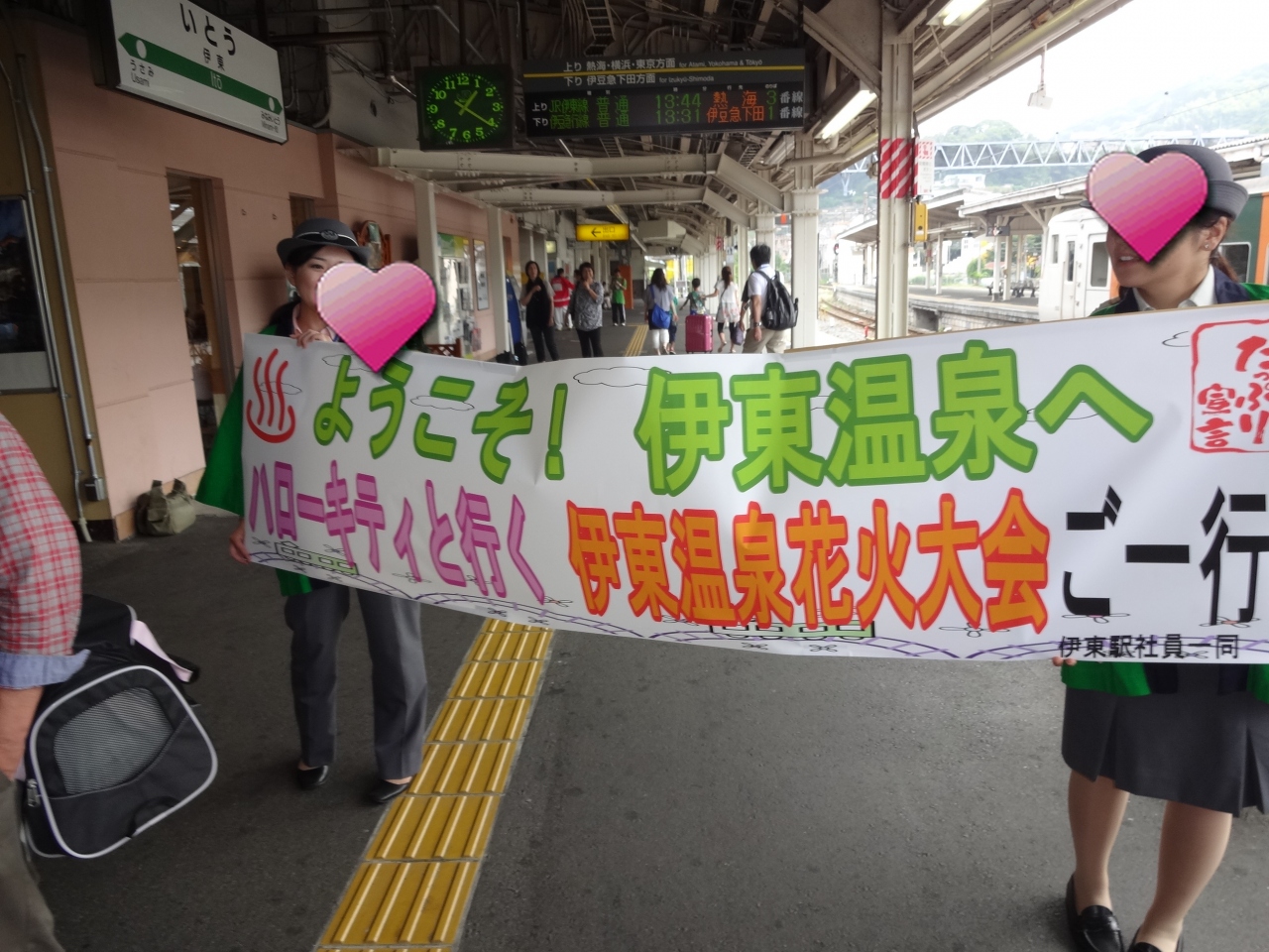 藤沢駅から、伊東のキャラクターマリにゃんが、登場。