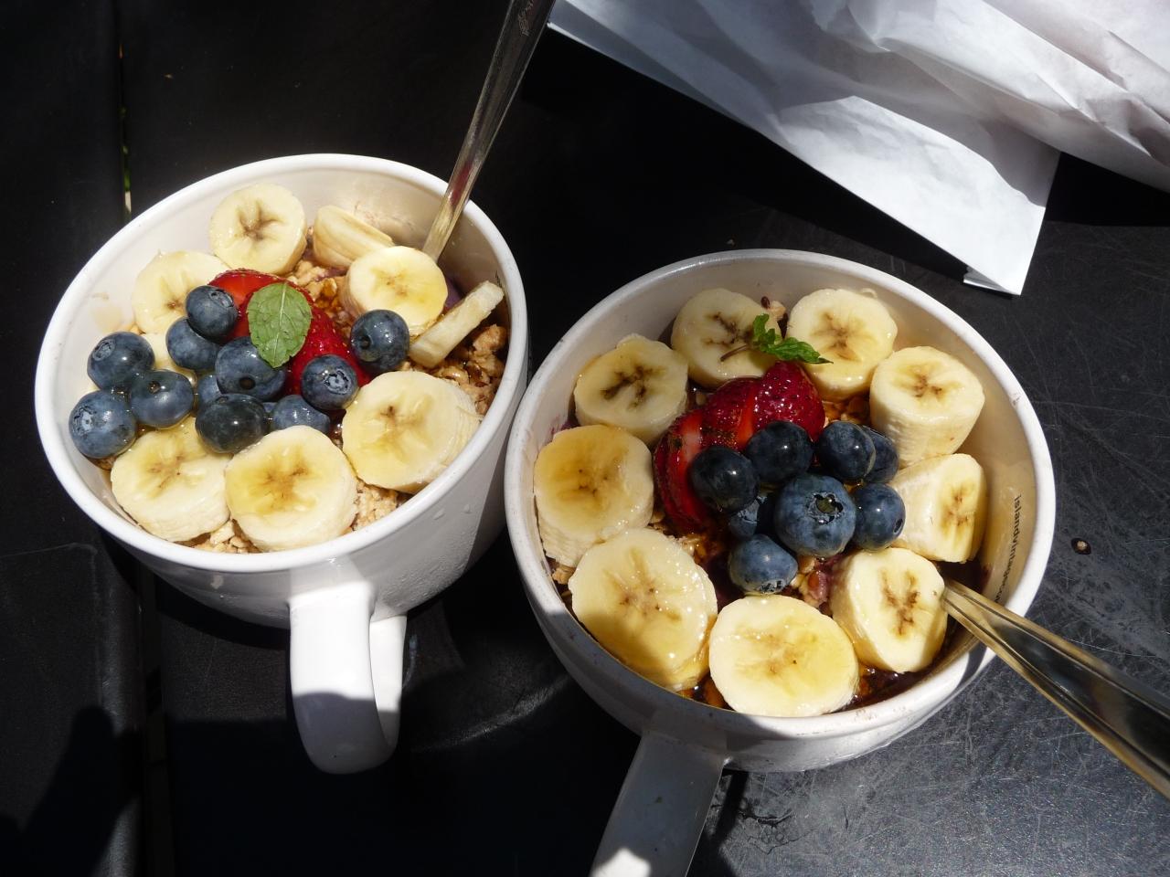 ホテル近くにあるエッグスンでパンケーキ・エッグベネディクト・アサイボールを。
