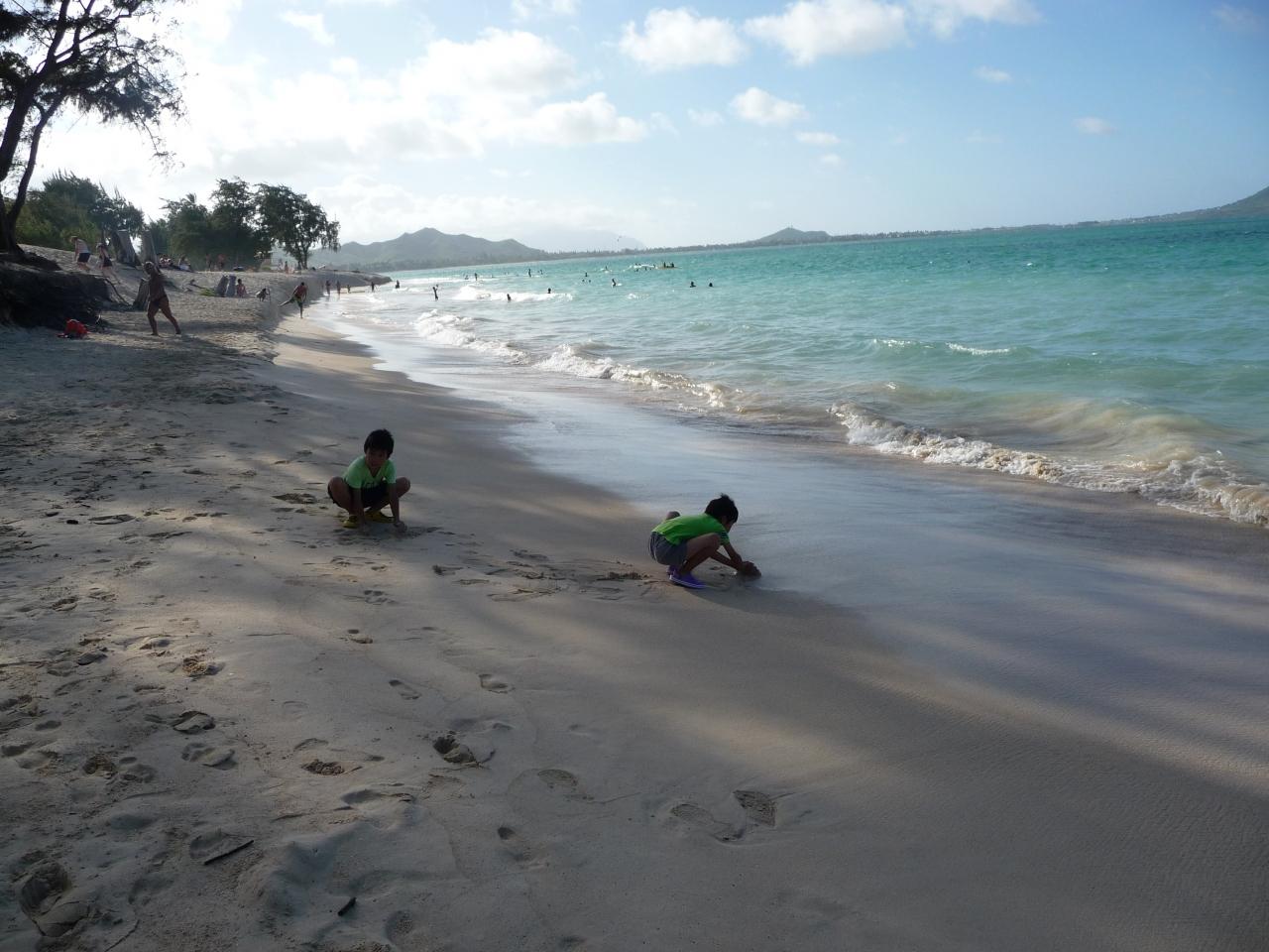 今日はワイキキビーチで海水浴。子供はシュノーケルを初体験。はまっていました。
