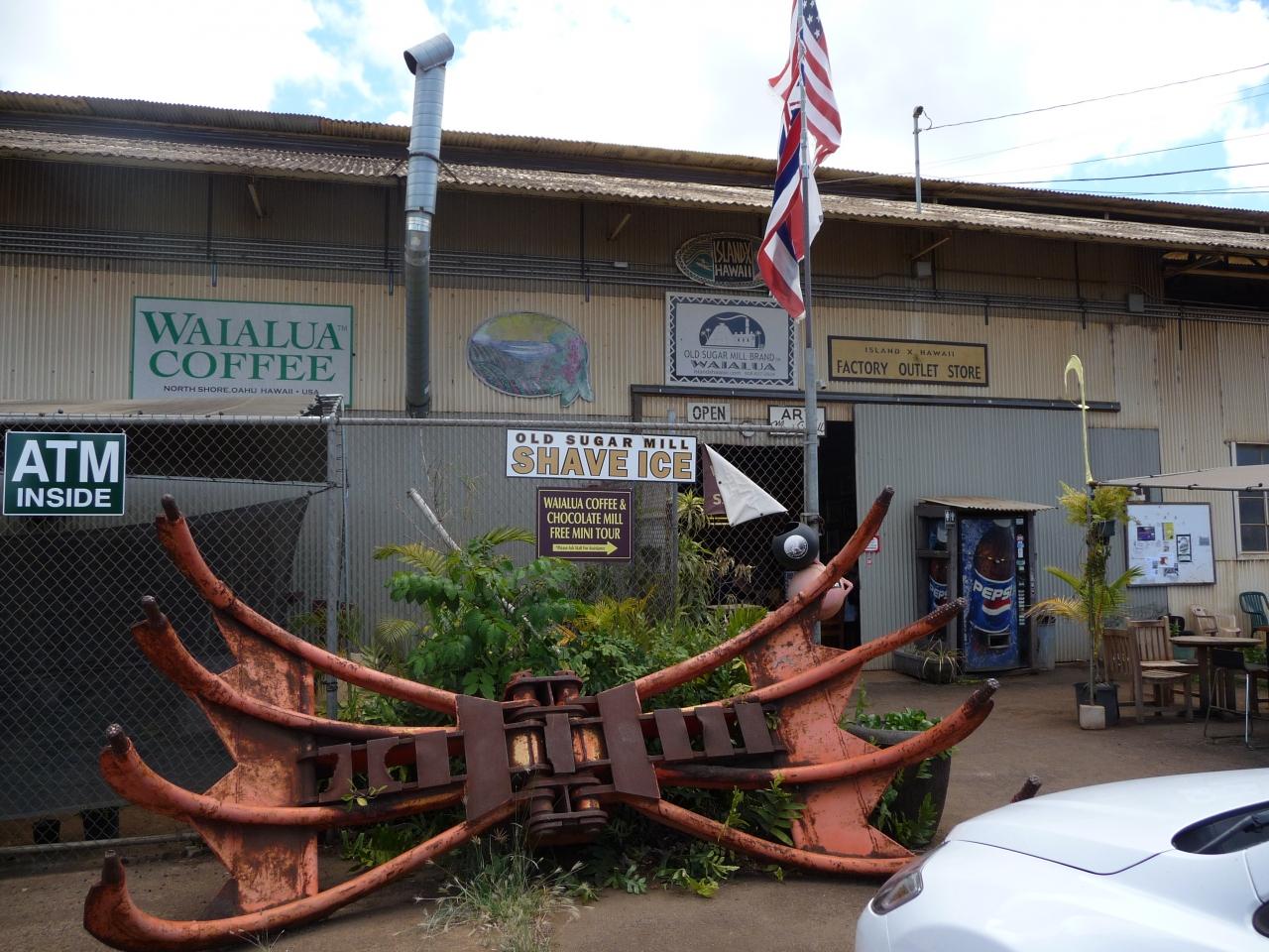 ハレイワの町へ。マツモトシェイブアイスで抹茶スペシャルを食べようとしたがこの行列に並ぶのがいやでパス。