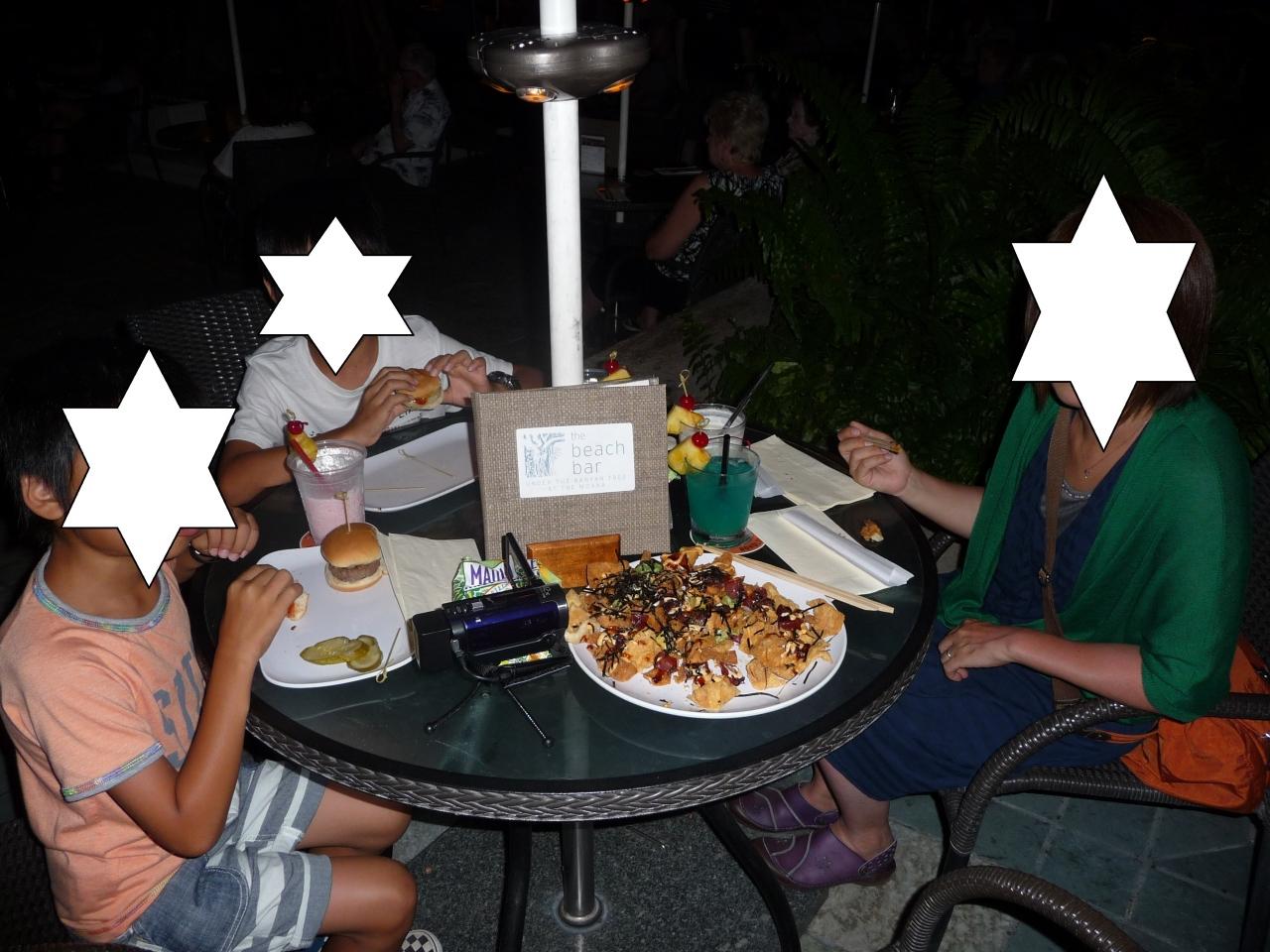 ちょっとしたつまみと子供たちはシュリンプを食べなかったのでハンバーガーなどを。