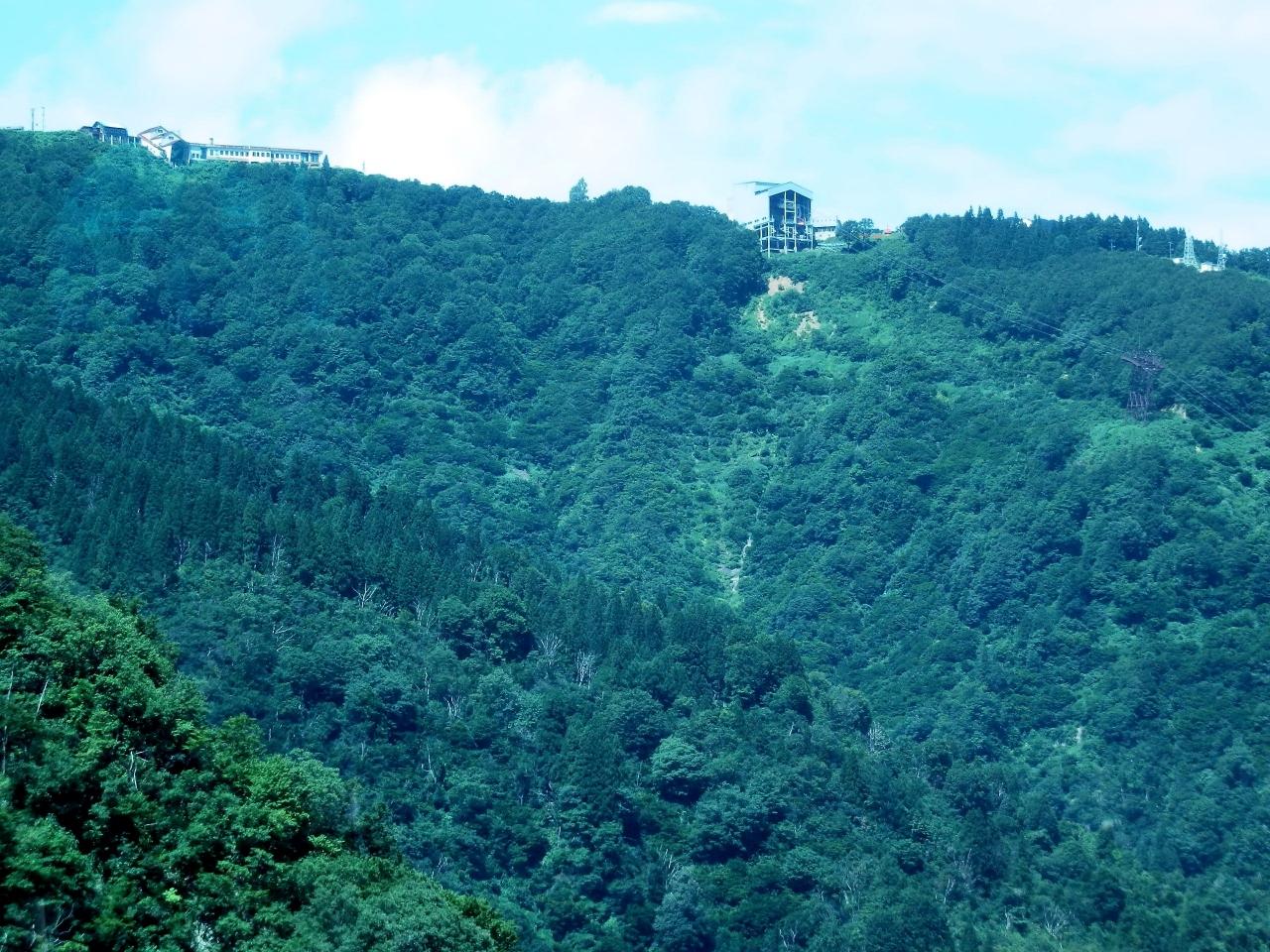 湯沢を通過する時に、ロープウェイが見えました。 -