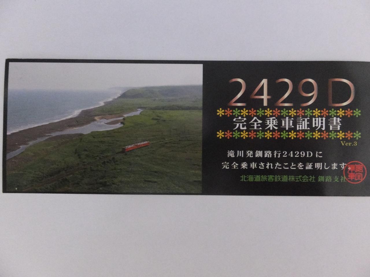 “滝川駅から乗車してきました”と宣言すると、【2429D 完全乗車証明書】が頂けます。