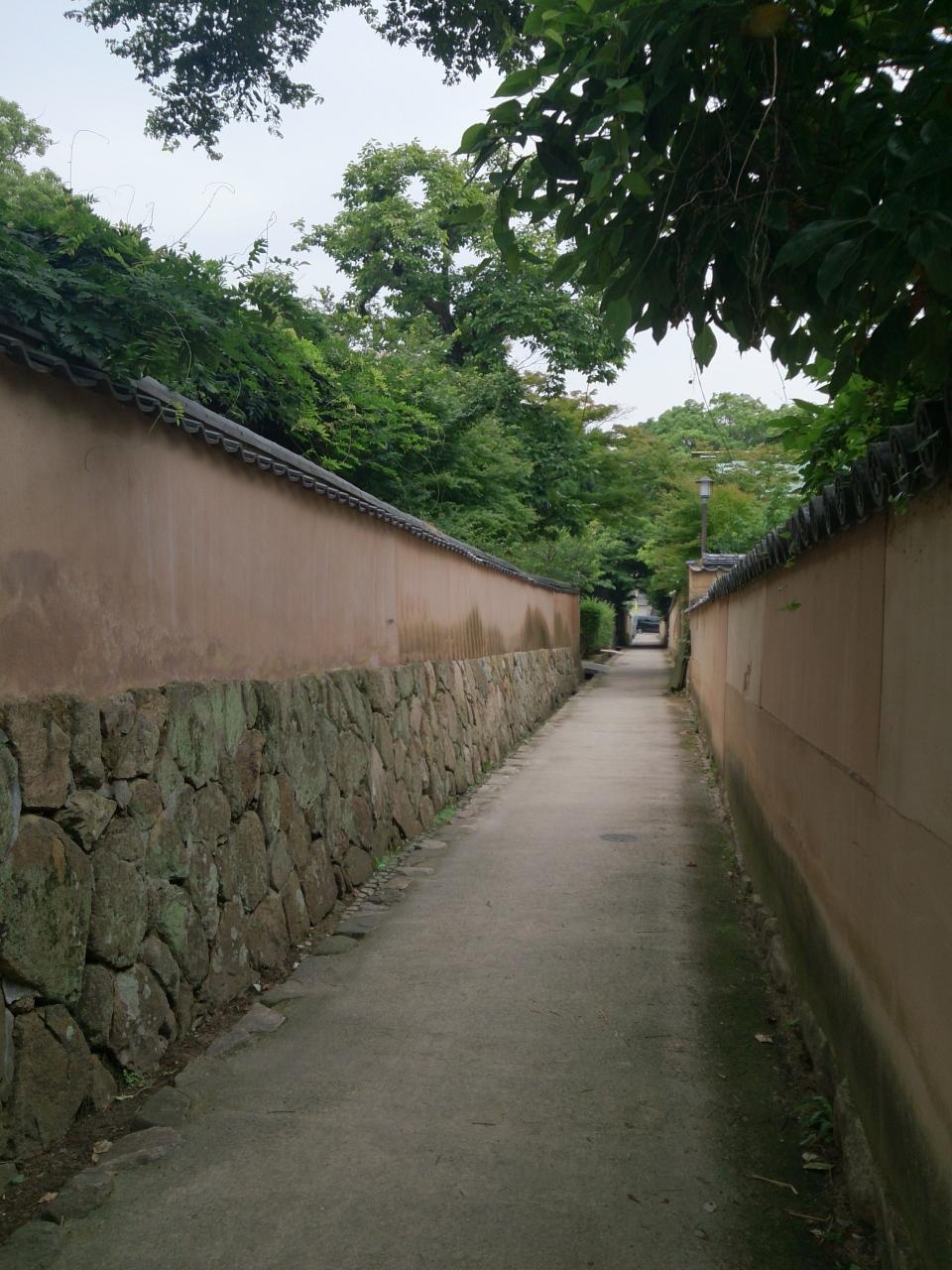 防壁として築かれた土塀が長府の街並みの醍醐味。 -