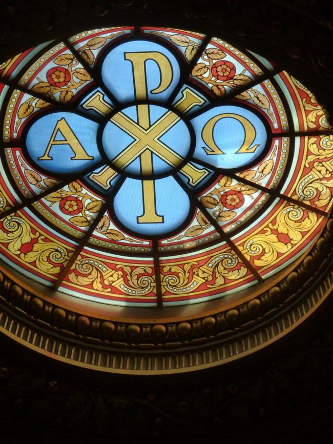 四隅には福音書を著した四聖人がタイルモザイクで描かれています。