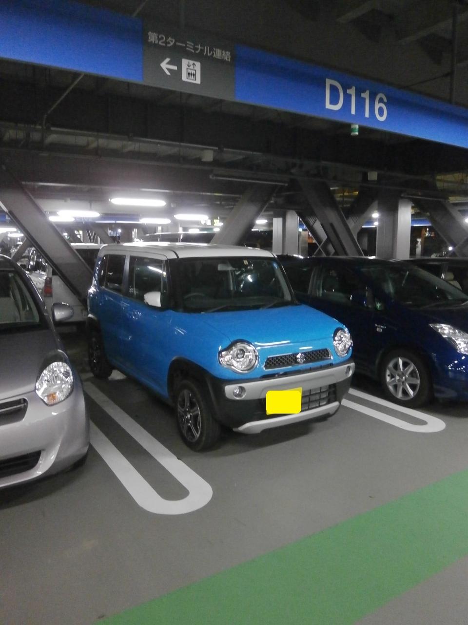 今回は日頃から利用している駐車場屋さんだと1日3,000円しますので、24時間ならこちらの国内線第二ターミナル(ANA側)にある駐車場に車を停めておきます。値段は24時間で1,500円でした。