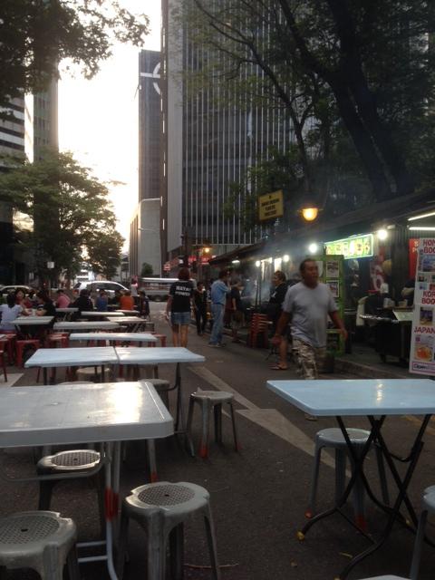 途方に暮れていると何処からか良い匂いが漂ってきます。ふと以前にネットで読んだことがある屋台の事を思い出しました。もしかしてと建屋の裏に歩いて行くとありました!ビルの谷間の道路を閉鎖して屋台がありました。