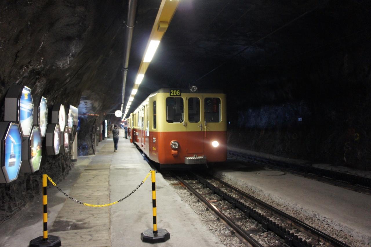 我々とは逆回りでグリンデルワルト側からユングフラウヨッホに行く場合、グリュンド駅でスイッチバックするので、どちらを窓側にするかは、よく考えて乗ると良いと思います。