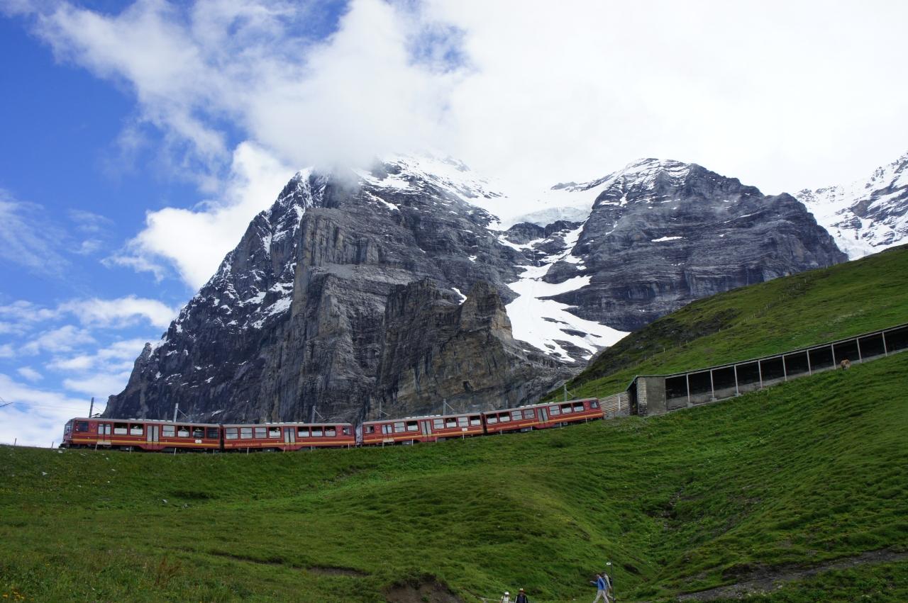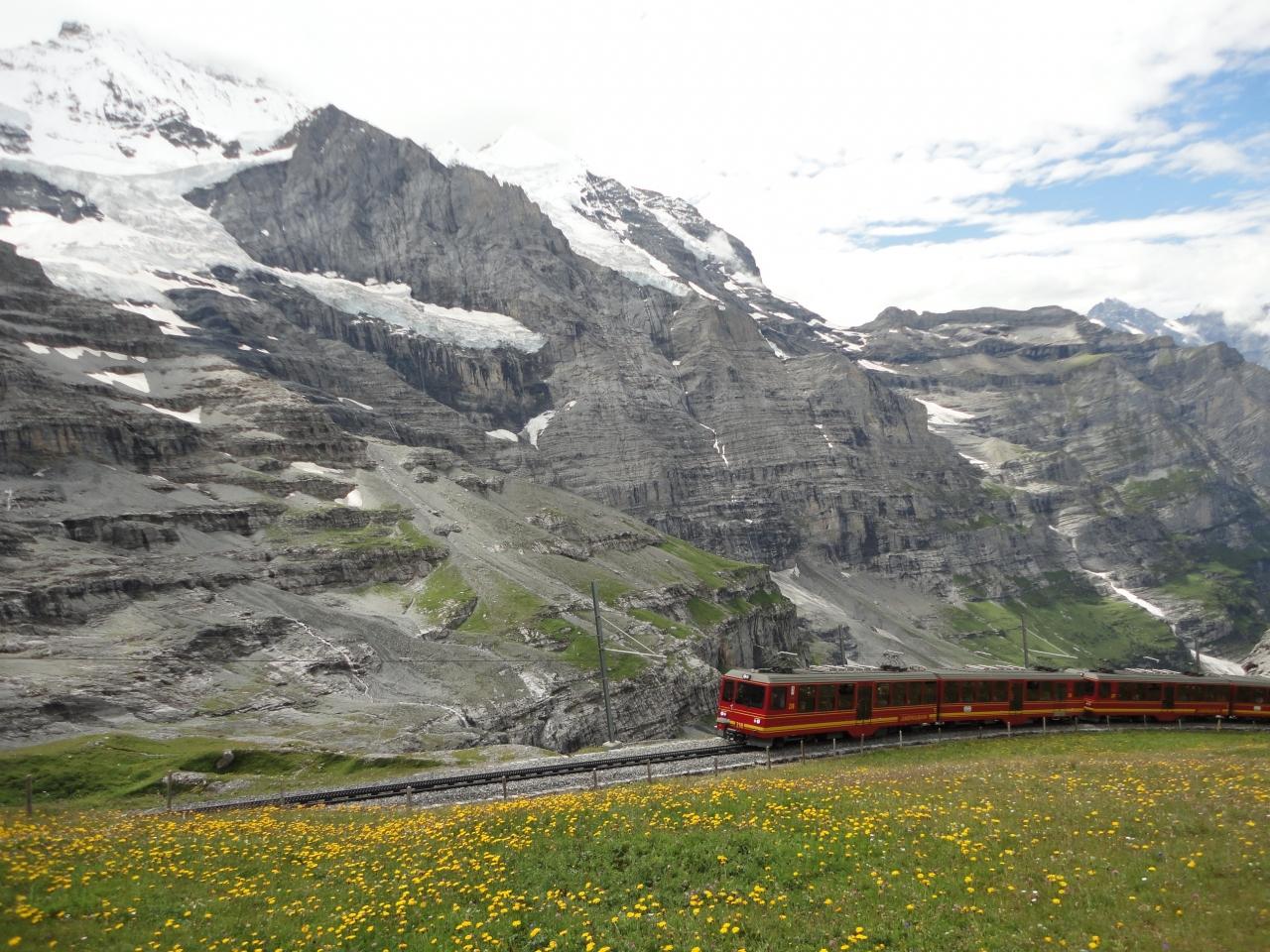晴天率が低いというベルナーアルプスの山々。幸いにもアイガー、メンヒ、ユングフラウの名峰を拝むことができました。